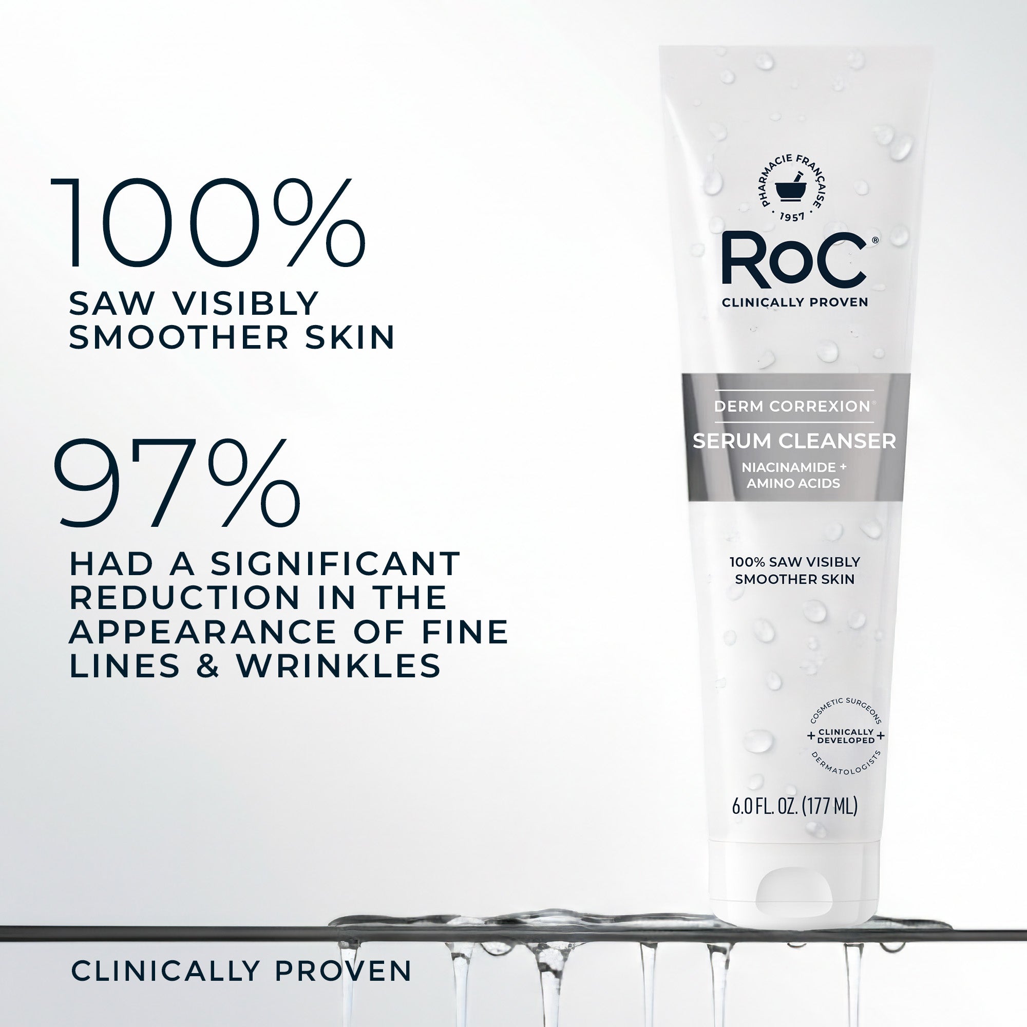 Experience a high-performance daily cleanser that delivers visibly smoother skin from the very first wash. With RoC’s Derm Correxion Serum Cleanser, 100% saw visibly smoother skin*. After just two weeks, 97% had a significant reduction in the appearance of fine lines & wrinkles.
