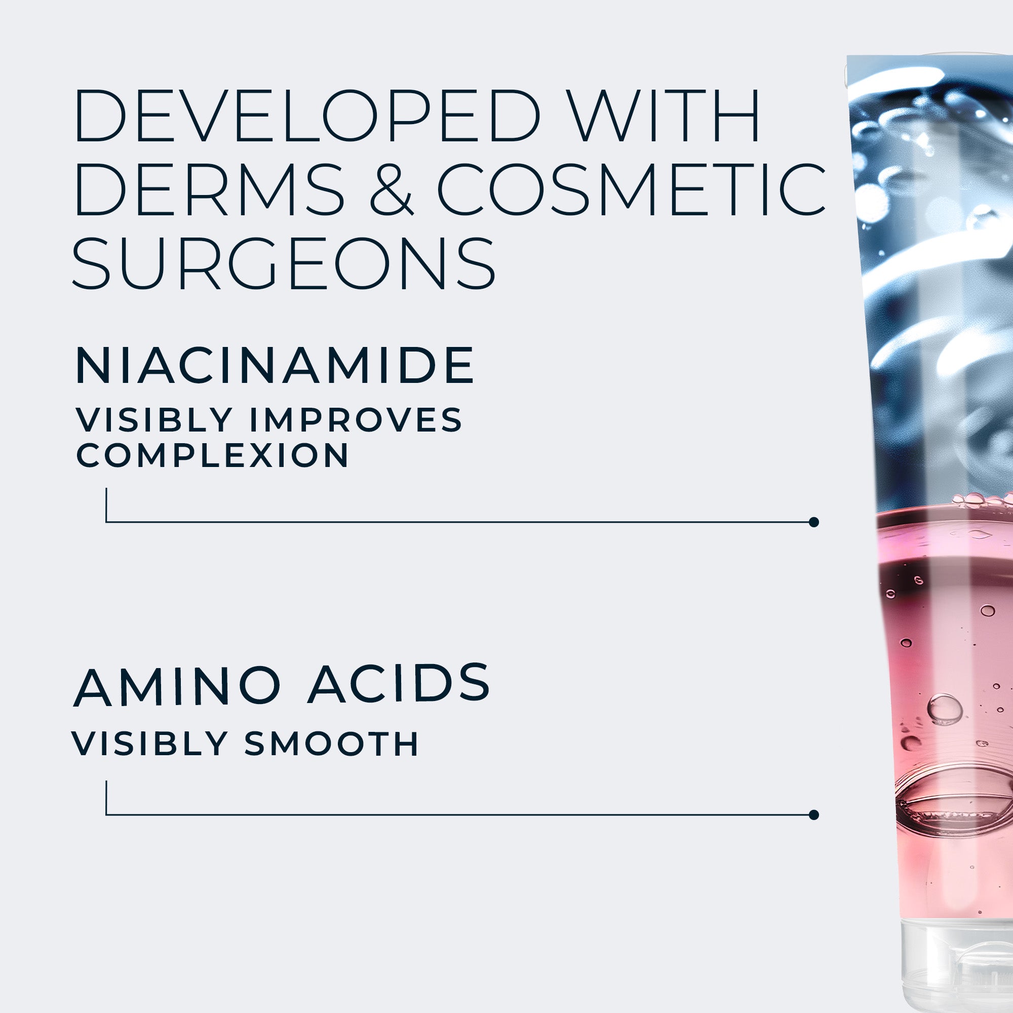 Developed with Derms & Cosmetic Surgeons this skin-transforming cleanser gently dissolves oil, dirt, and long-wear makeup. With continued use, Amino Acids & Niacinamide visibly optimize skin texture & healthy-looking complexion.